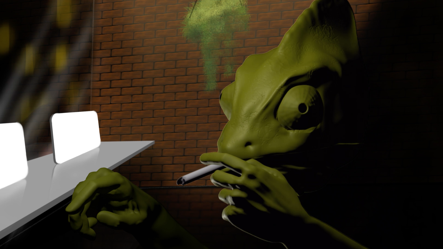Based on the attention as a unit predictable by marketing, this animated film proposes an inverse experience in which the viewer’s attention is aroused through the grotesque image, thereby opening up to interpretation and stimulating the imagination. The chameleon – an insect predator with a sticky tongue, a professional capturer, a desert dweller, and sometimes cannibal – embodies the worker of captology, a digital marketing discipline born in Stanford laboratories that capitalises on the same sticky predation of man towards his fellow creatures.